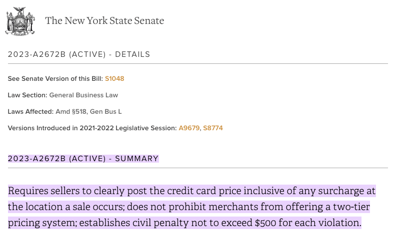 Please be sure to make your New York merchants aware of this update. A link to the New York State Senate's Surcharge ruling can be found here.